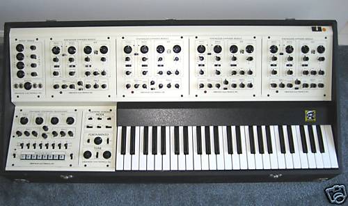 No classic synthesizer collection would be complete without a contribution from Tom Oberheim, who designed several polyphonic (multiple notes at once) synthesizers that have become well-known for their rich sound. Prior to the advent of the low-cost microprocessor--in 1976 a Z-80 microprocessor was $300.00; in 1980 it was $10.00--efforts to create polyphony without a CPU were challenging. Yamaha managed it by throwing several thousand parts at the problem, repeating a circuit as many times as needed. Oberheim took a more modular approach. He built the SEM, a "synthesizer expander module," and designed instrument cabinets that allowed one to install from one to eight SEMs with each one added permitting a new note of polyphony. Each SEM had its own control panel, and the base unit's keyboard had an 'assigner' that could route sections of the keyboard to specific SEMs, thus allowing one to dial up for example a bass isntrument, a chord isntrument, and a lead instrument all in one synthesizer.